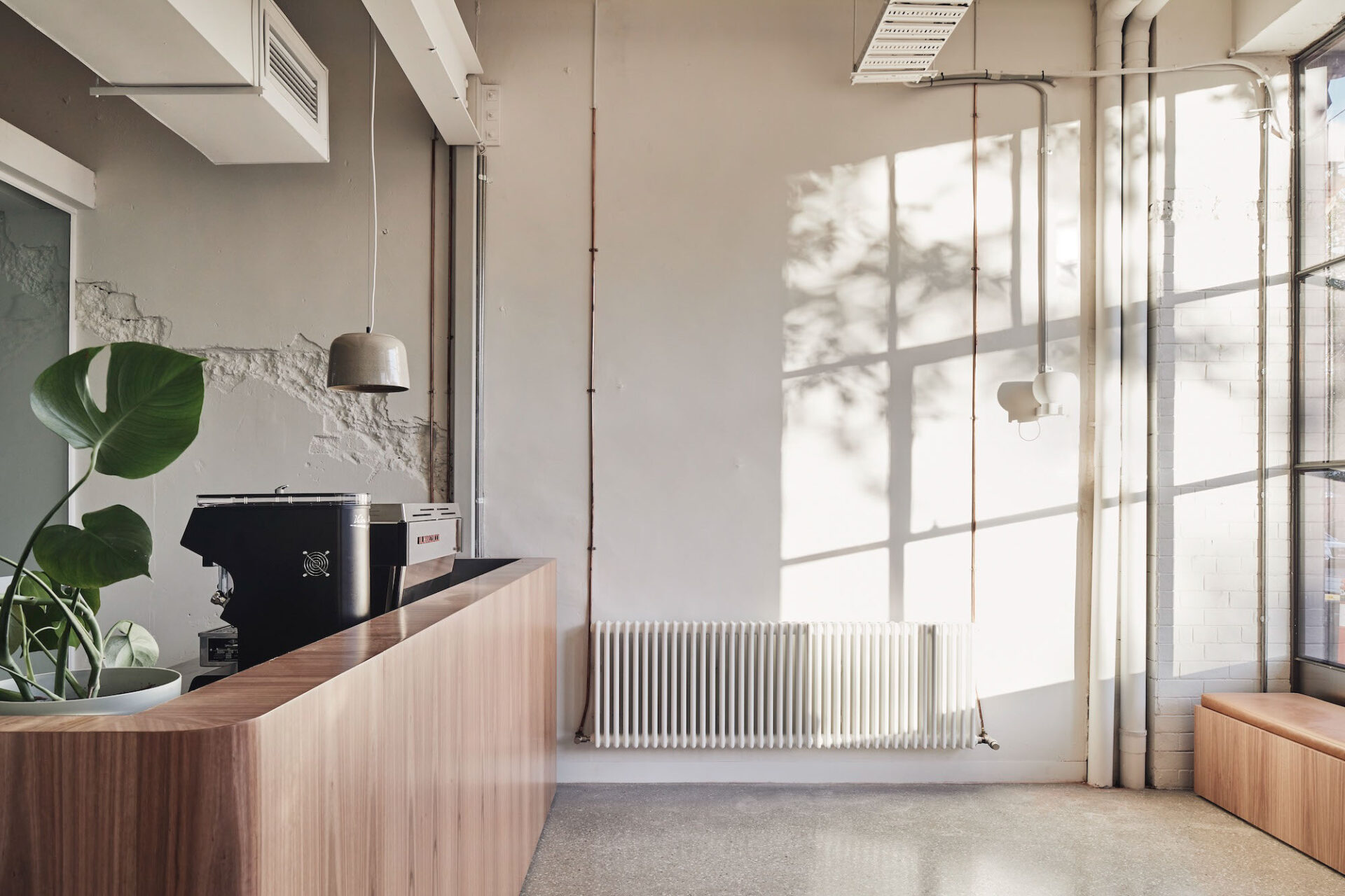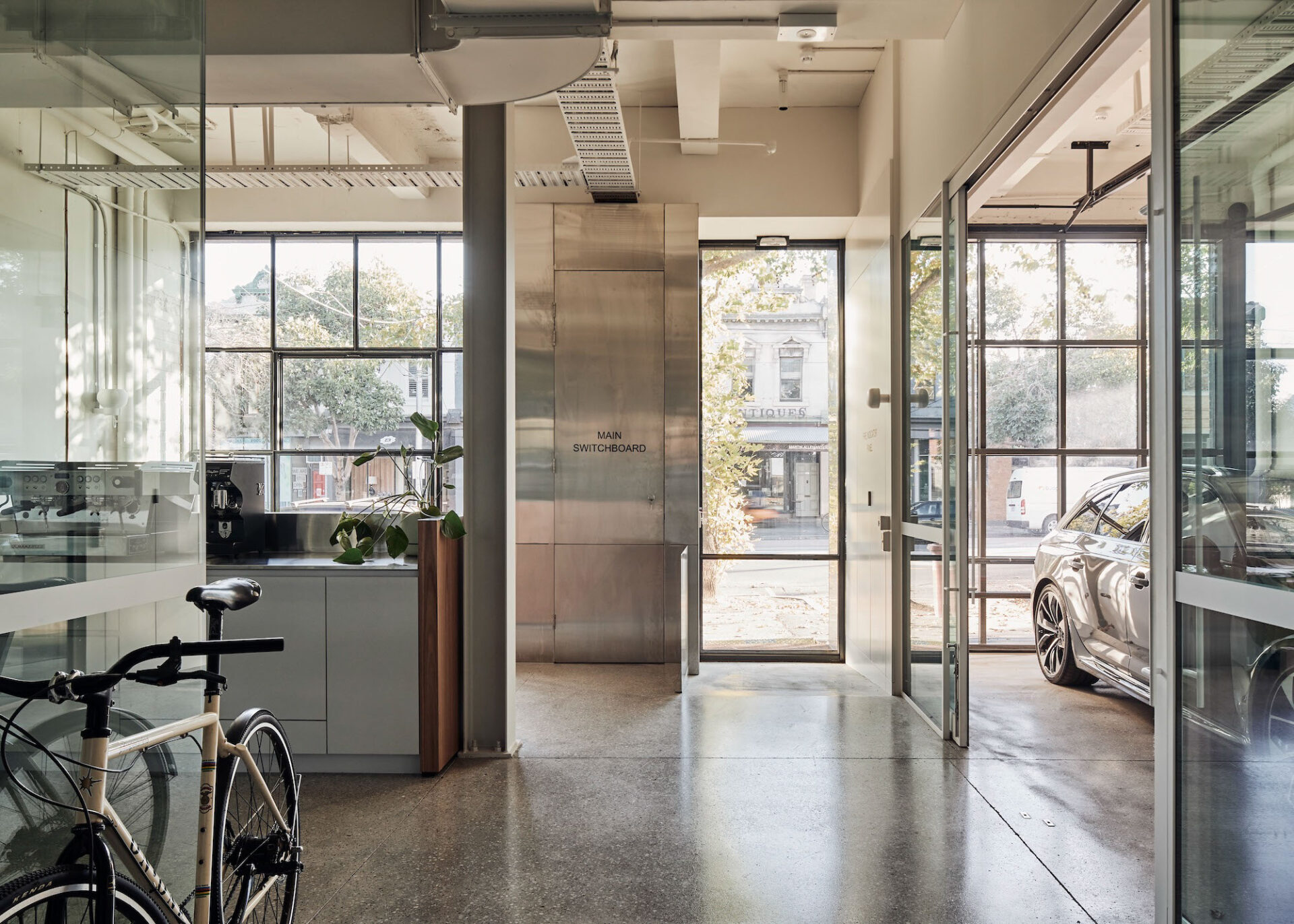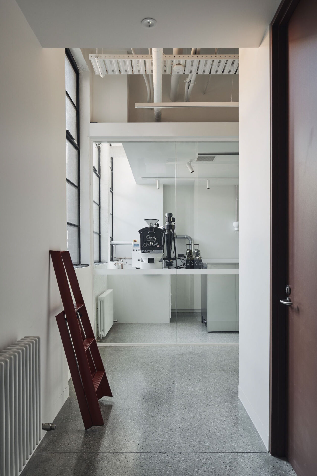 LCM’s Australian flagship venue is a pre-war heritage warehouse which has been celebrated through the layering of unique programs Roasting lab, Tasting room and Workplace. With the visitors are taken on a journey across three levels each celebrating a different facet of the business. Ground floor hosts the cafe, roasting lab and tasting room, the first floor is a functioning workspace and office with the third level housing meeting spaces, a kitchen and an outdoor deck that looks over Clarendon St in South Melbourne. A single steel clad stair connects the three levels, a sculptural form that wraps up through a singular void that sits below a skylight that pulls sunlight through every level.